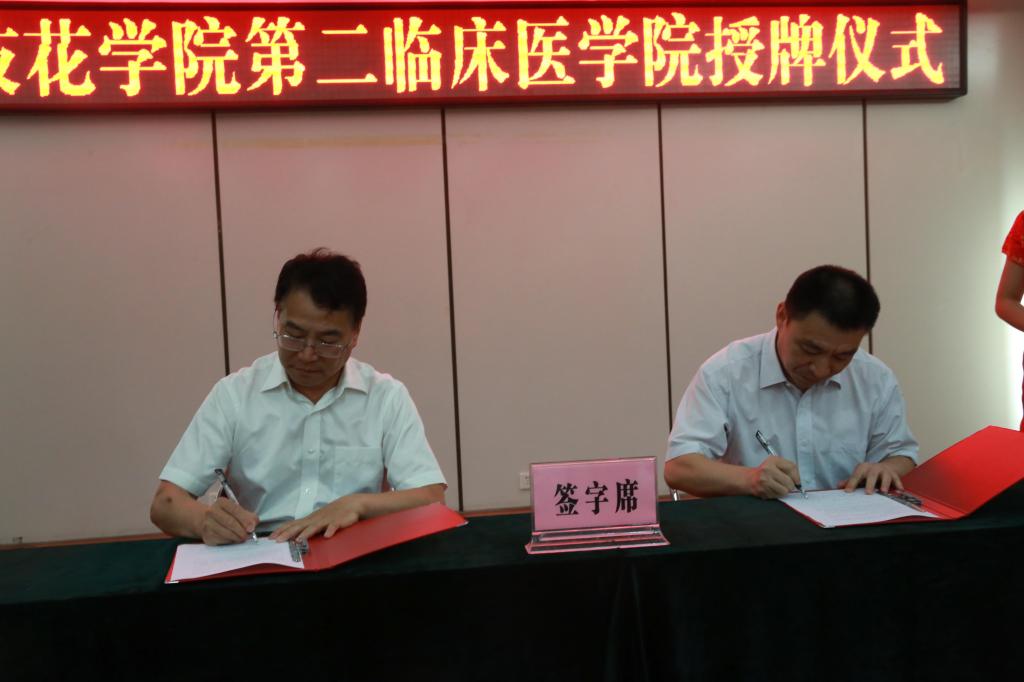 仪式上,徐翠宣读了《攀枝花市卫生和计划生育委员会关于同意市中心医院成为攀枝花学院第二临床开云电子官方入口中国有限公司的批复》,刘立新宣读了《攀枝花学院关于同意攀枝花市中心医院为第二临床开云电子官方入口中国有限公司的通知》。黄双华和徐文豪分别代表我校和中心医院签署中心医院成为学校第二临床开云电子官方入口中国有限公司的协议。马晓凤、肖立军、徐翠、徐文豪共同为我校第二临床开云电子官方入口中国有限公司揭牌。