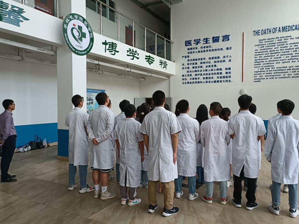 最后,党员们面向党旗,庄严地重温入党誓词,铿锵有力的声音回荡在大楼内外。全体毕业生党员佩戴党徽、身着白大褂,满载收获,整装待发,准备开启新的人生旅途。