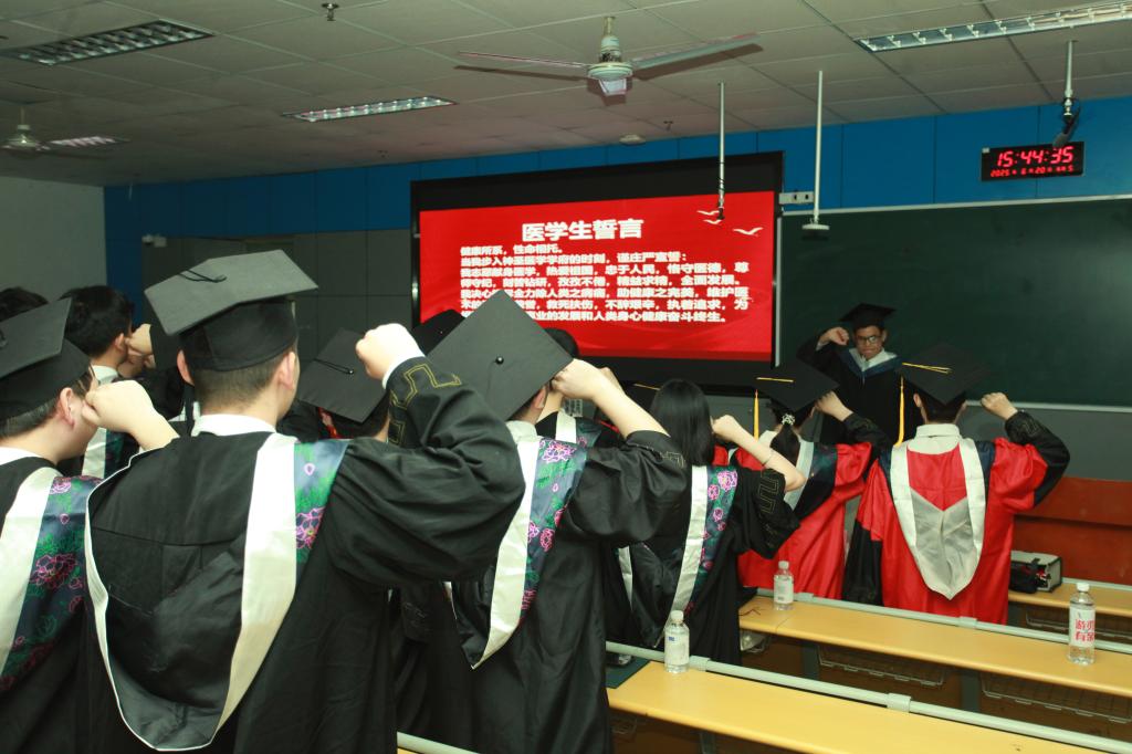 最后,由毕业生代表吴世纪带领现场所有师生重温医学生誓言。在全场铿锵有力的宣誓声中,开云电子官方入口中国有限公司2025届学生毕业典礼暨学位授予仪式圆满落幕。