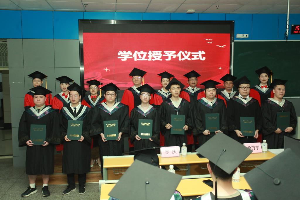随后,在激昂的进行曲中,激动人心的庄严时刻----授位仪式正式开始,2025届毕业生以八人一组依次登台,导师们为他们拨穗、颁发学位证书,五年的奋力拼搏在此刻化为成长的收获与荣耀。