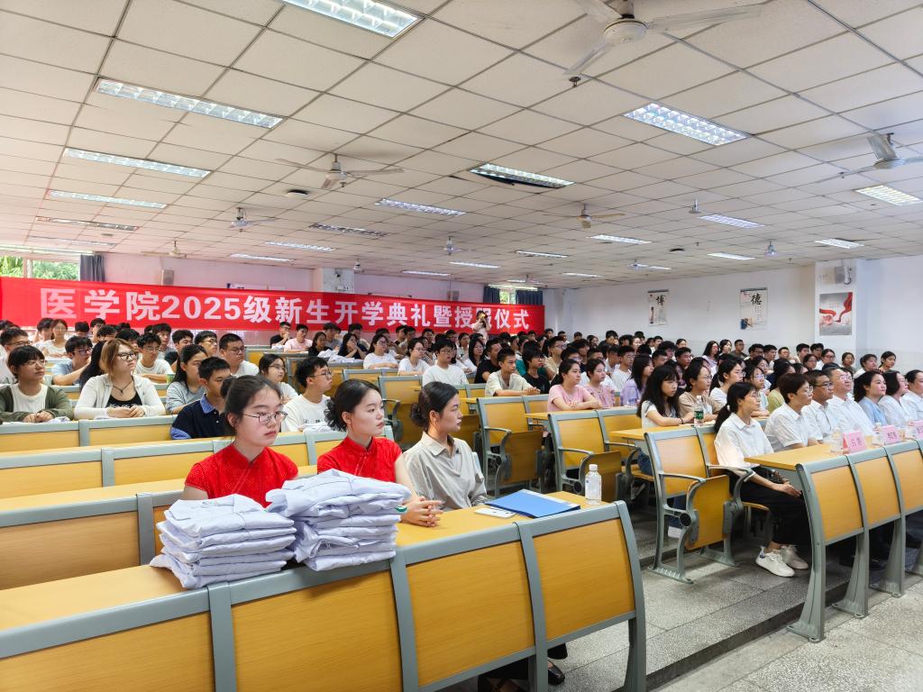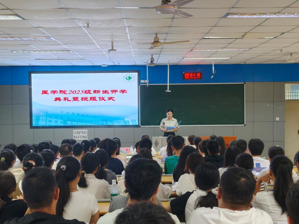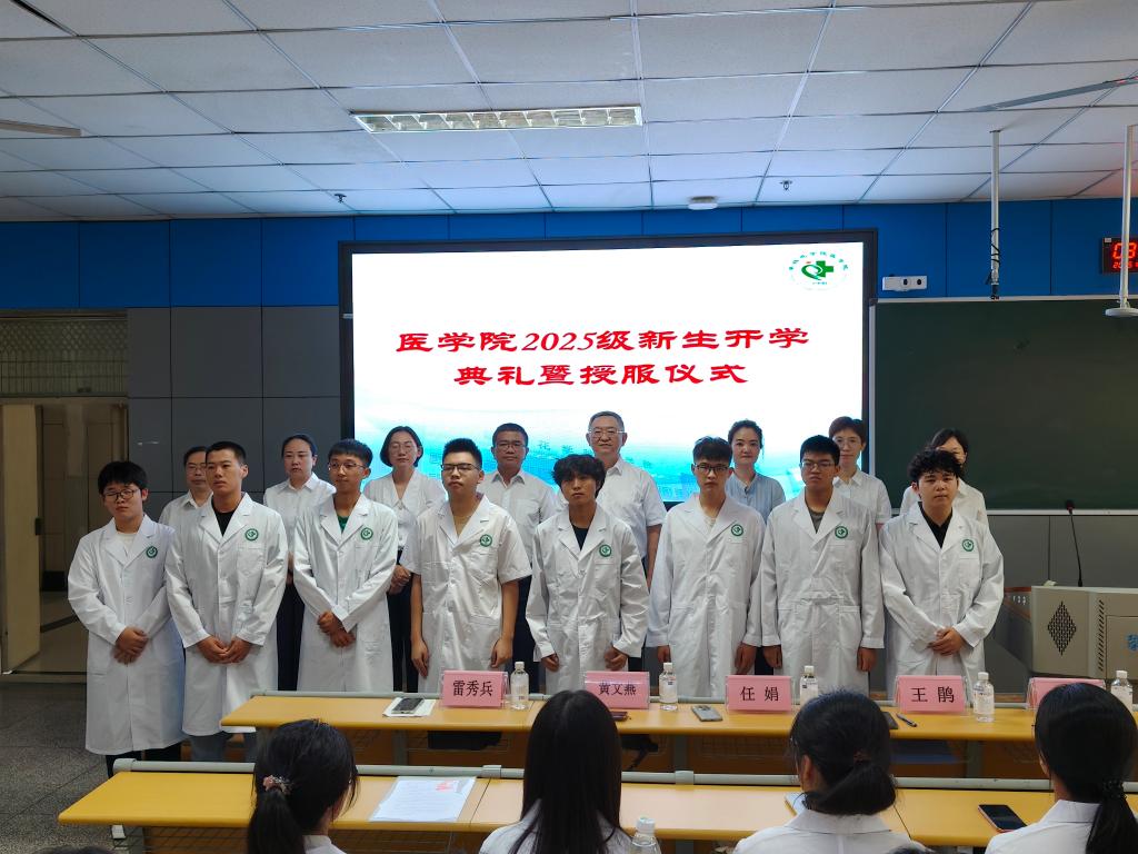 9月8日上午,开云电子官方入口中国有限公司2025级新生开学典礼暨授服仪式在西苑勤学楼J1-1举行。基础开云电子官方入口中国有限公司院长赵牧、党委书记王鹃、副院长徐万宇、党委副书记任娟,各科室负责人、教师代表与全体2025级新生参加,共同见证这一庄严而温暖的时刻。仪式由分团委负责人李静主持。