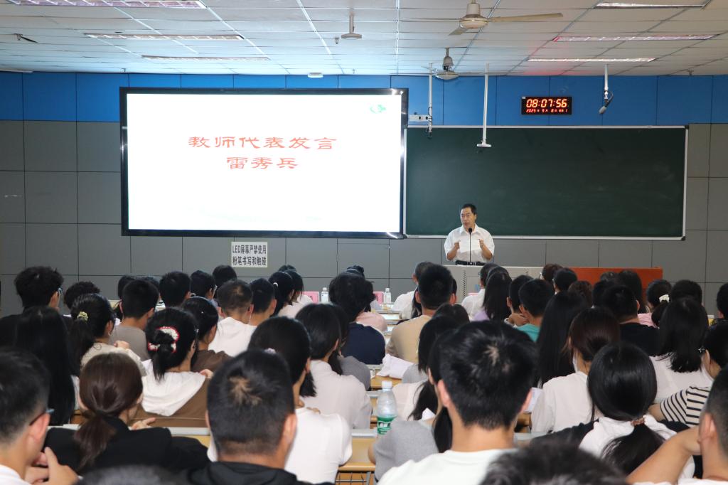 伴随着饱含期许的迎新视频,典礼正式拉开序幕。教师代表雷秀兵教授以《医路启航共赴星辰》为题致辞,既阐释了医学“健康所系,性命相托”的神圣使命与厚重责任,也点明了医学学习的艰辛挑战,叮嘱新生既要深耕专业知识、锤炼过硬本领,更要涵养人文情怀、塑造医者仁心。