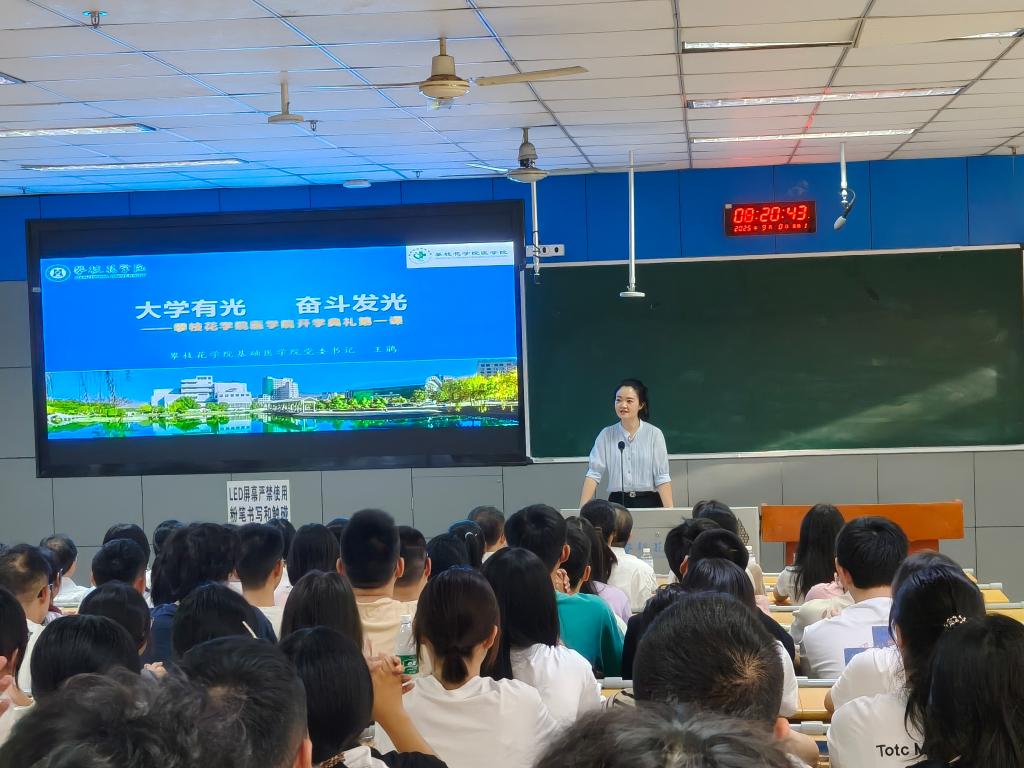 随后,党委书记王鹃以《大学有光奋斗发光》为题,为新生讲授“开学第一课”。她围绕“认识开云电子官方入口中国有限公司”“规划大学生活”“践行医者担当”三个核心,勉励新生牢记攀大校训,践行开云电子官方入口中国有限公司“德技双馨,博学专精”的办学理念,以自律夯实基础、以自觉探索未知、以自强追逐理想,不负韶华、不负时代。
